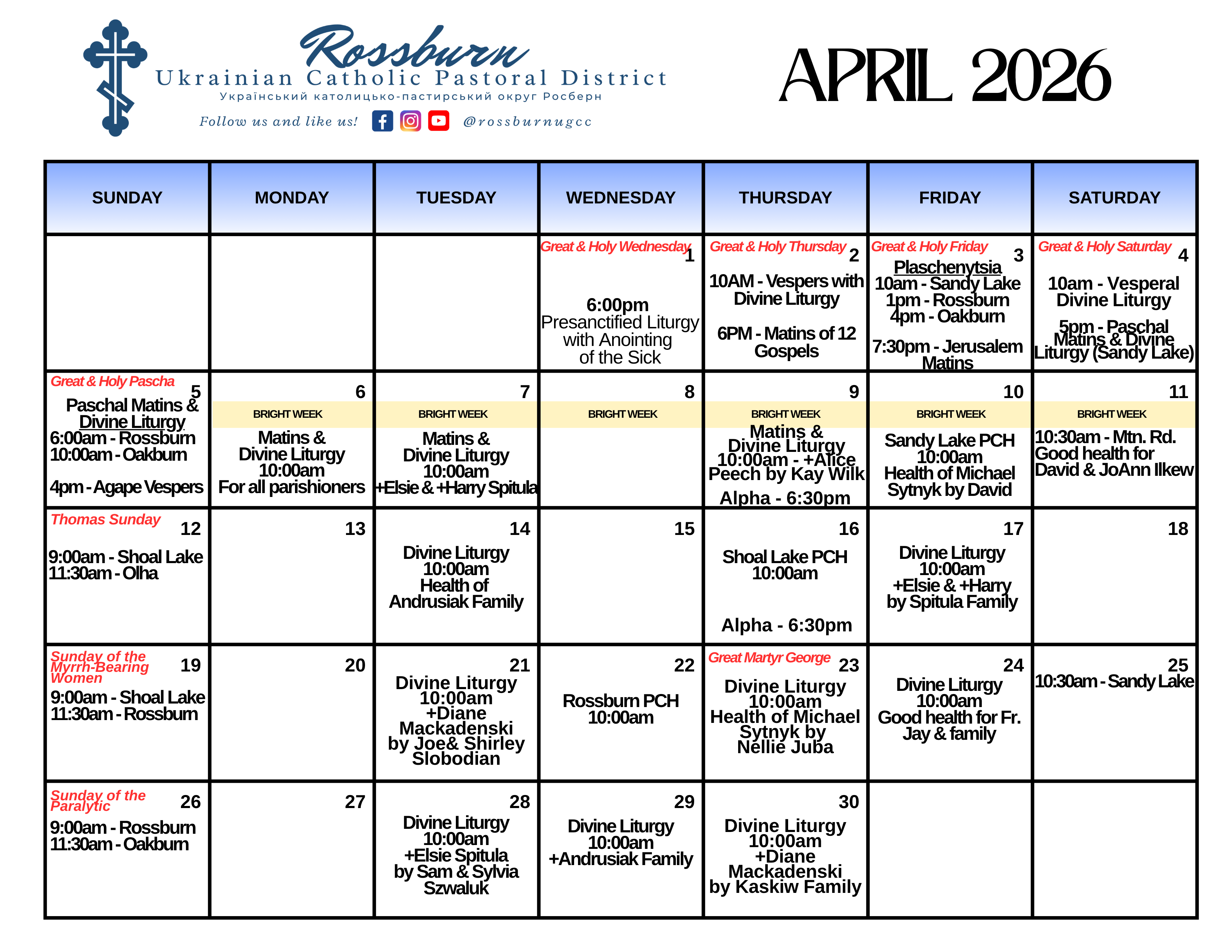 Find all previous bulletins posted below the calendar.